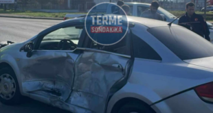 TERME SANAYİ ANA YOL IŞIKLARINDA KORKUTAN KAZA! Sanayi ana yol ışıkları mevkiinde iki aracın çarpıştığı trafik kazası paniğe neden oldu. İhbar üzerine ambulans ve itfaiye ekipleri hızla olay yerine sevk edildi. Trafik polisleri kazayla ilgili detaylı inceleme başlattı.